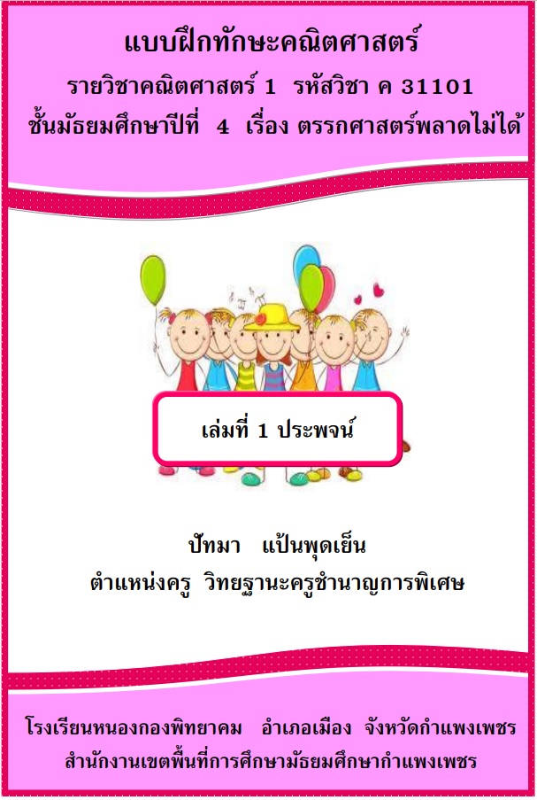 แบบฝึกทักษะคณิตศาสตร์ รายวิชาคณิตศาสตร์1 รหัสวิชา ค 31101 ชั้นมัธยมศึกษาปี ที่ 4 เรื่อง ตรรกศาสตร์พลาดไม่ได้ (การเชื่อมประพจน์) |