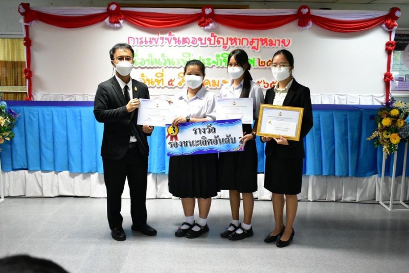 ขอแสดงความยินดีกับนักเรียน โรงเรียนหนองกองพิทยาคม ได้รับรางวัลรองชนะเลิศอันดับ 2 การแข่งขันตอบปัญหากฎหมายเนื่องใน “วันรพี” ประจำปี 2565 จัดโดย ศาลจังหวัดกำแพงเพชร และ ศาลเยาวชนและครอบครัวจังหวัดกำแพงเพชร ได้แก่ นางสาวตะวัน บัวจันทร์ และ นางสาวสุภาวรรณ สาไชยยันต์ ฝึกซ้อมโดย นายภูมิศักดิ์ คันธะชุมภู และนางสาวศิวภรณ์ กรีสวัสดิ์ |